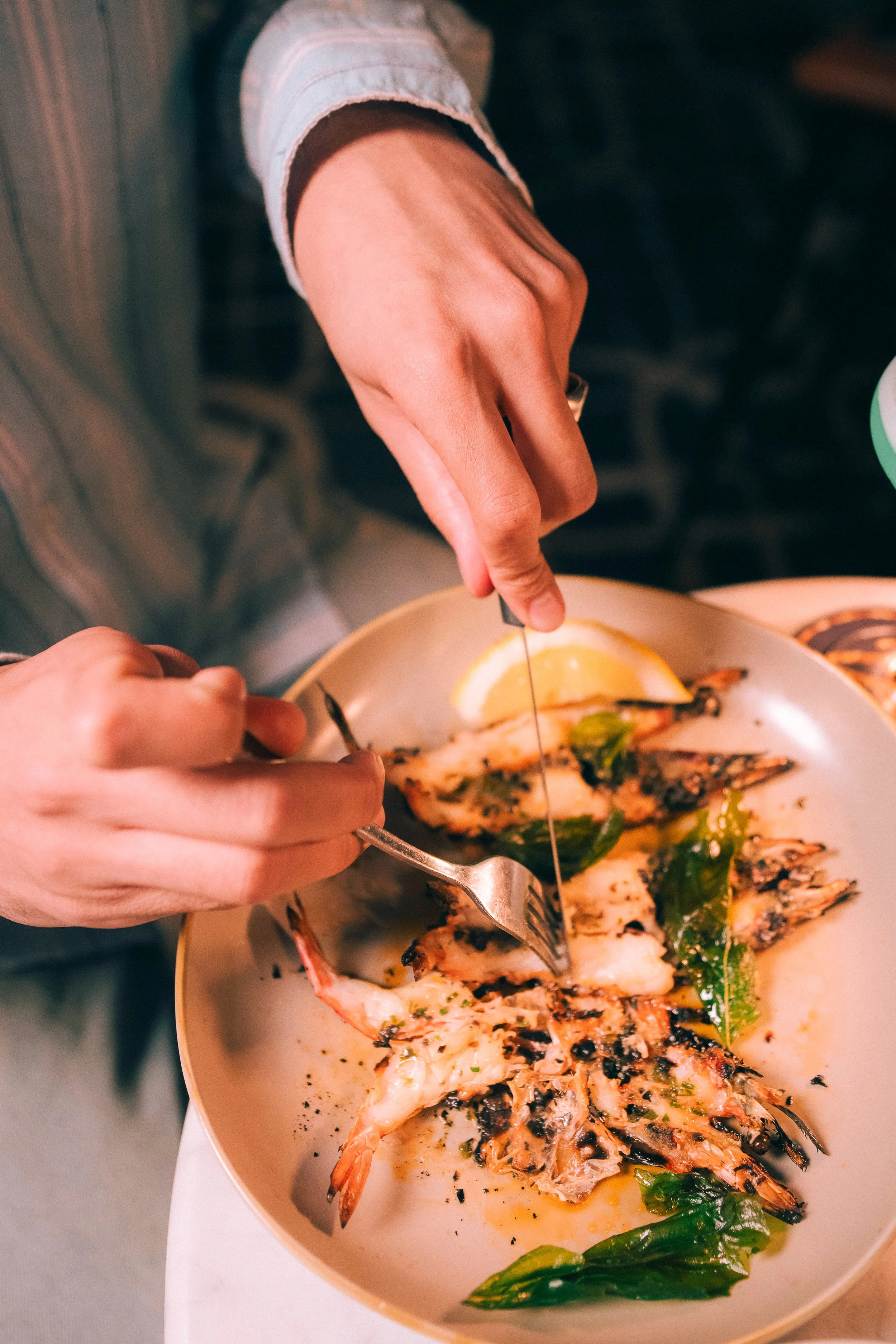 Split tiger prawns, kombu butter, prawn oil, lemon, shiso